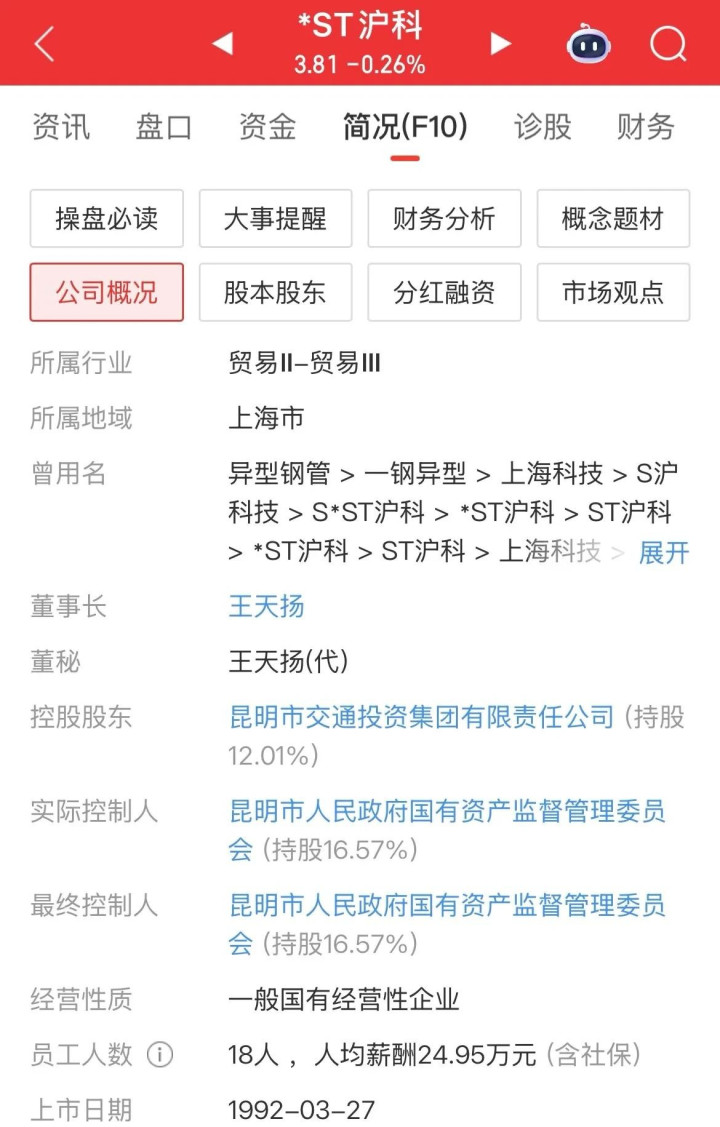 你很难想象,一家上市33年的老牌公司,如今全公司就18个员工,比一个普通部门人还少。它做化工产品和农产品贸易,听起来挺传统,可三季报营收才544万元,两年连亏,每股净资产只剩0.11元,几乎就是“空壳”状态。这种状况,早该引起警惕了。