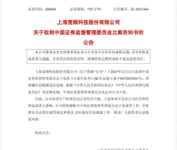 这周末,估计不少拿着ST沪科的人睡不踏实了。盘后一纸公告,说公司被立案调查,理由是信息披露违法违规,消息一出,股民心里“咯噔”一下,这可不是小事。连续九天下跌,股价已经干到3.81元,创了九年新低,不少人本来还指望熬到反弹解套,结果这下倒好,火上浇油。